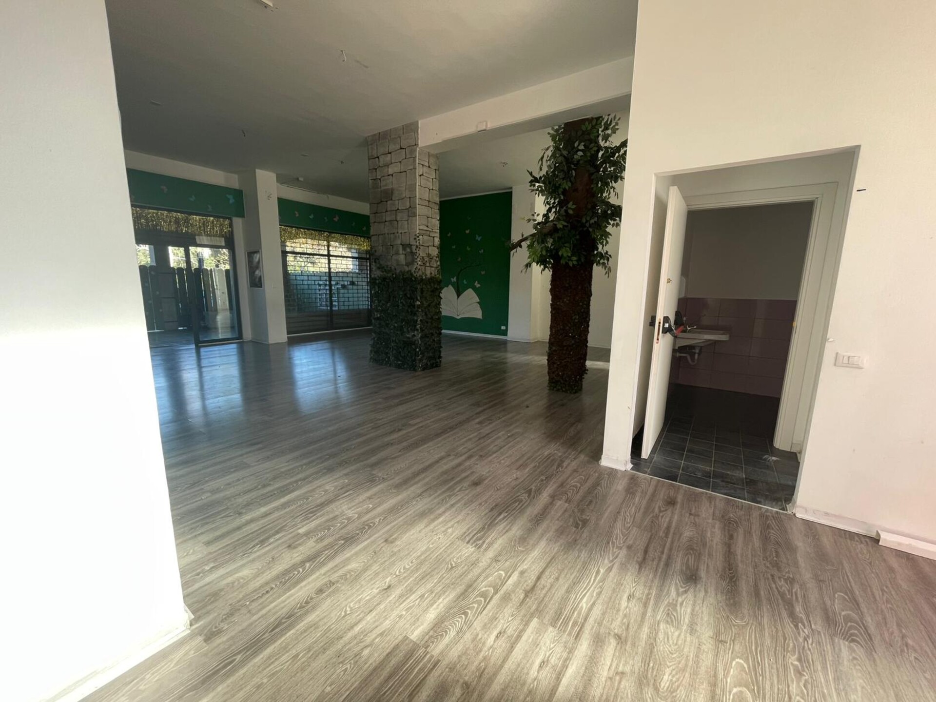 ✔️ Il locale è al piano terra con ingresso su strada e porta/vetrina in alluminio e vetro.